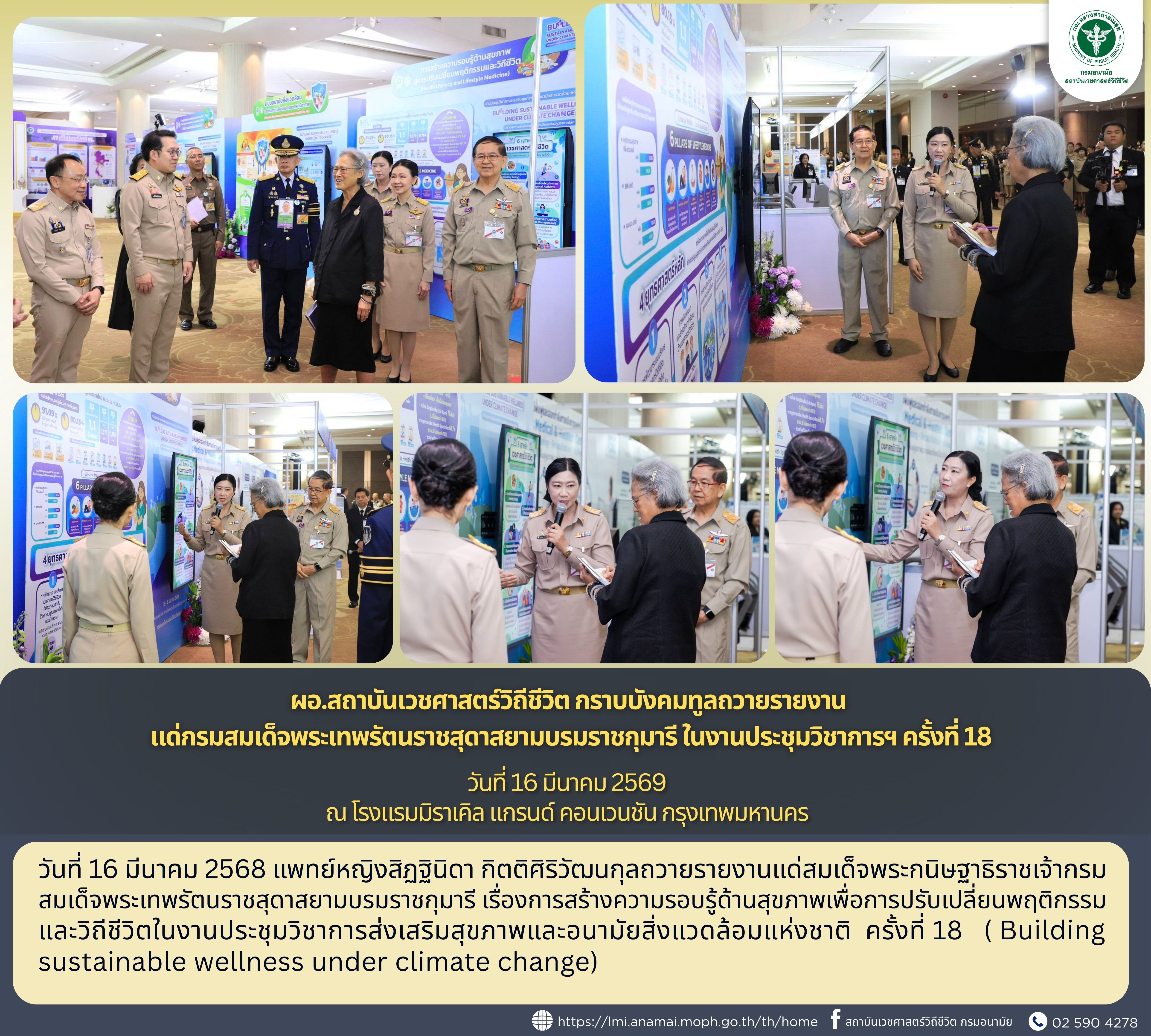 อ.สถาบันเวชศาสตร์วิถีชีวิต กราบบังคมทูลถวายรายงาน แด่กรมสมเด็จพระเทพรัตนราชสุดาฯ ในงานประชุมวิชาการฯ ครั้งที่ 18